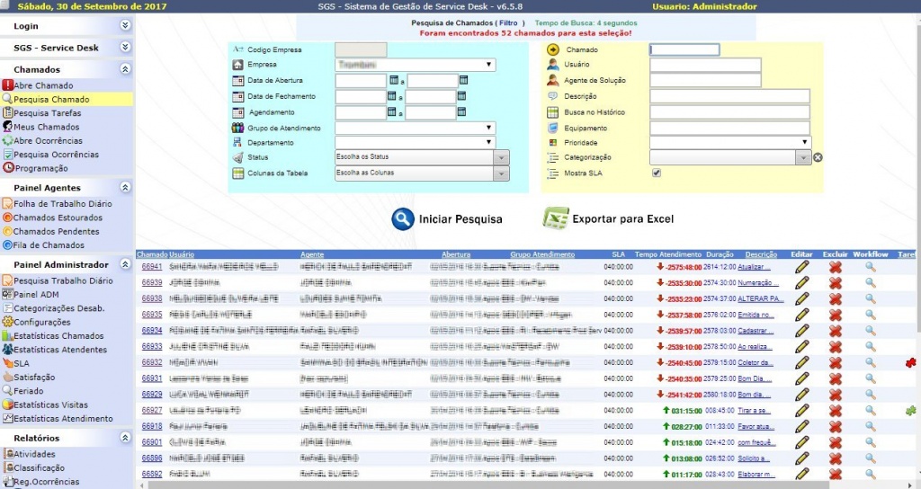 Fully configurable, with service times (SLA) contracts, groups of solution, agents x groups, among other items.